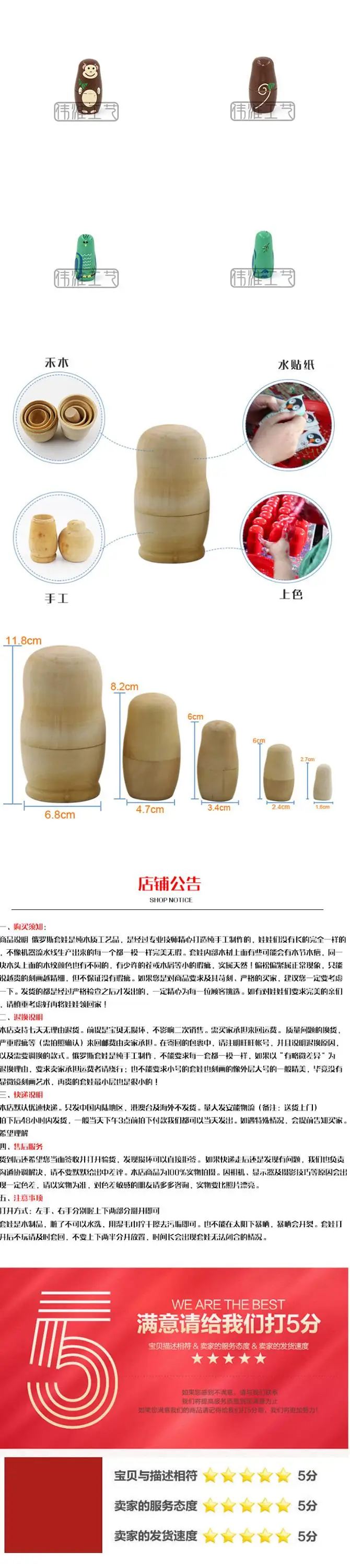 | Item | DIY Toys Handmade Wooden Russian Matryoshka Nesting Dolls |